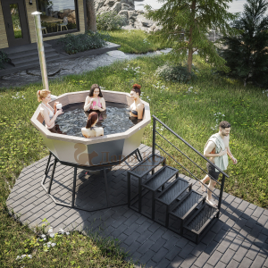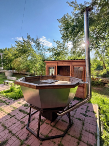 Банный чан из нержавеющей стали Ø-2350 на подставке с приварной печью с водяной рубашкой